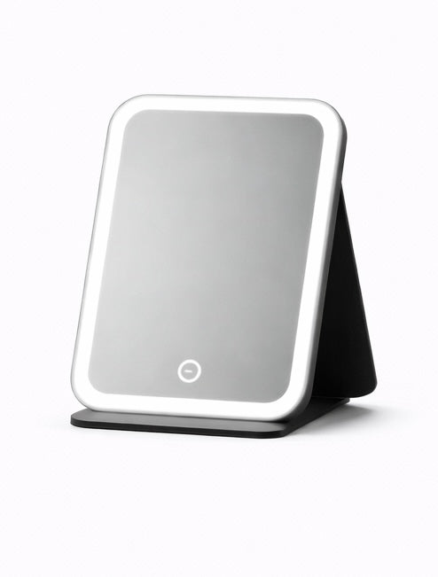 This rechargeable LED mirror features three adjustable light modes and dimmable brightness, delivering salon-quality lighting at home or on the go with a foldable stand and touch controls.